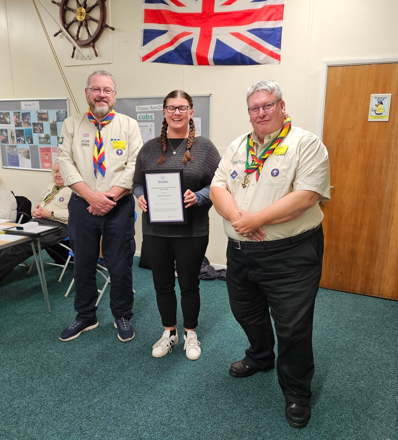 Julie has been recognised with the Award for Merit, a distinction that reflects her consistent commitment and the positive example she sets within Scouting. The award acknowledges the significant difference her contributions have made to her group and the wider movement.